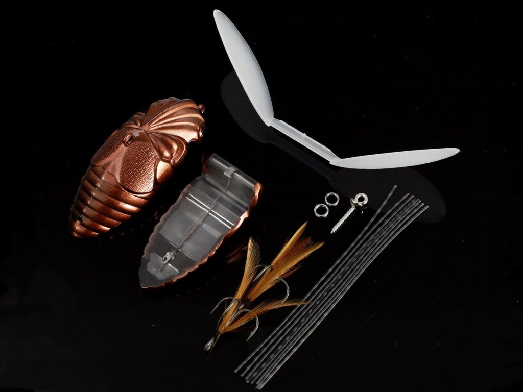 Základní principy a výhody cikád DUO zůstávají zachovány! U Shinmushi také nejsou žádné pohyblivé části, které by se mohly rozbít. Je zde opět pevný, ale pružný ELASTOMER, který prodlužuje jejich životnost a usnadňuje vedení wobleru. Středový trojháček je na ukotven na vyndavacím šroubu a lze tak měnit barvy wobleru a vytvářet si originální kombinace stejně jako u menší Koshinmushi.