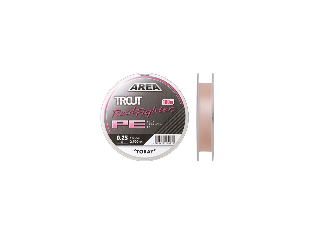 Trout Area Real Fighter PE splňuje nejnáročnější japonské standardy v oblasti šňůr. Šnůra je balená ve 100 m návinu ve světle růžové barvě, která zaručuje její skvělou viditelnost i na delší vzdálenost. Vzhledem k jejím vlastnostem ji doporučujeme zejména pro lov s plandavkami a gumovými nástrahami ve všech vzdálenostech.